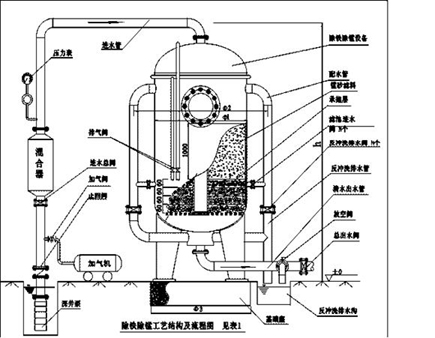 含铁(锰)的地下水经冲气或加入氧化剂后,水中铁(锰)离子开始氧化,当水流经